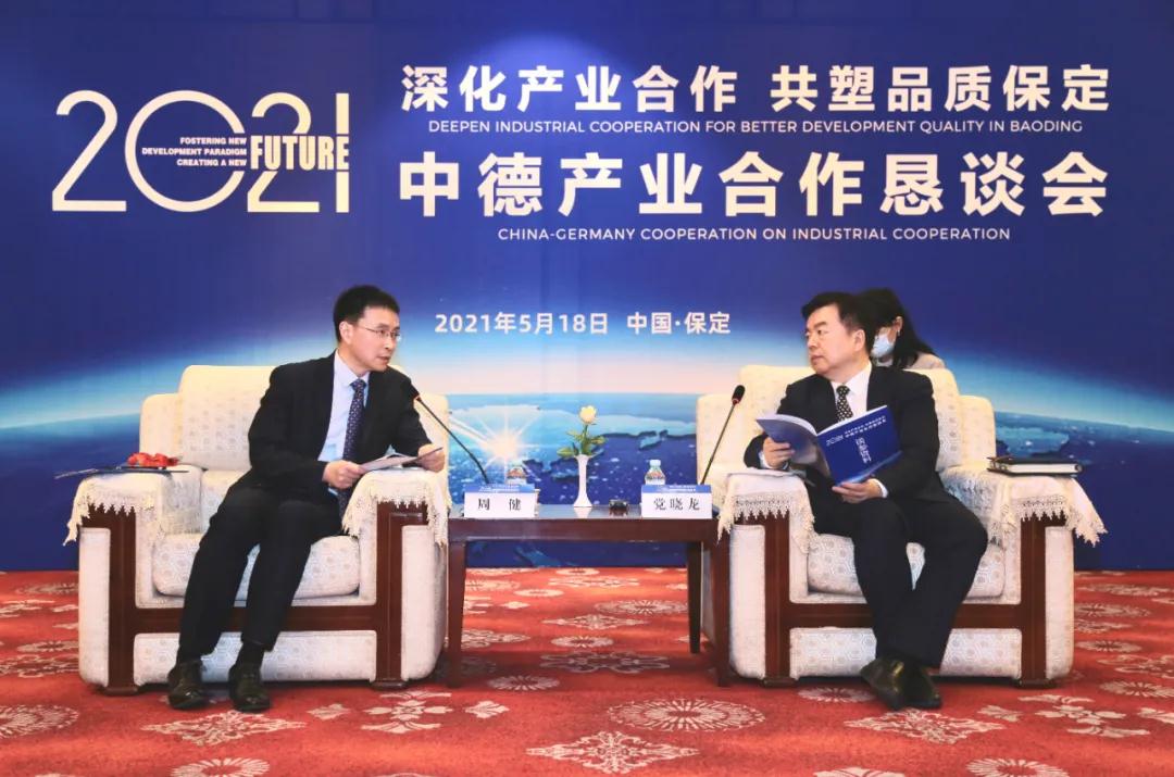 5月18日,以“深化產(chǎn)業(yè)合作 共塑品質(zhì)保定”為主題的2021中德產(chǎn)業(yè)合作懇談會(huì)在電谷國際酒店隆重召開。省商務(wù)廳廳長張鋒、前聯(lián)邦德國國務(wù)秘書弗里德黑爾姆·奧斯特、德國賓根市長托馬斯·費(fèi)瑟、德國西南金屬與電子企業(yè)聯(lián)合會(huì)干事長蒂姆·文庭、德國梅森博格集團(tuán)董事長馬丁·梅森博格視頻寄語。工信部中小企業(yè)發(fā)展促進(jìn)中心副主任周健,保定市委副書記、代市長閆繼紅現(xiàn)場致辭。中國中小企業(yè)中心(德國)作為活動(dòng)協(xié)辦單位參加本次會(huì)議。