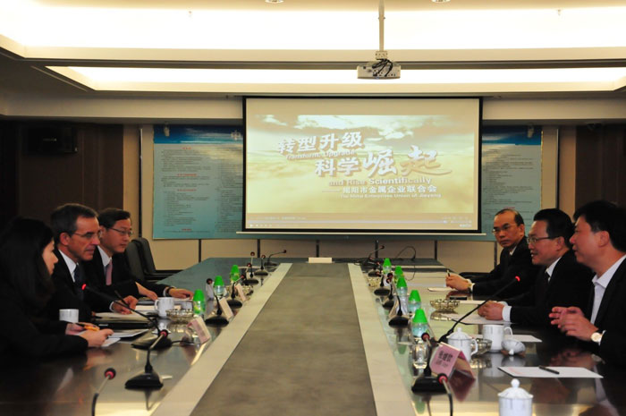 11月19日,法國(guó)前交通部長(zhǎng)、人民運(yùn)動(dòng)聯(lián)盟副主席蒂埃里·馬里亞尼先生在揭陽(yáng)副市長(zhǎng)曾瑞如的陪同下,前往中德金屬生態(tài)城現(xiàn)場(chǎng)考察,并到訪市金屬企業(yè)聯(lián)合會(huì)開(kāi)展交流座談。蒂埃里•馬里亞尼詳細(xì)聽(tīng)取了德企進(jìn)園投資的相關(guān)匯報(bào),對(duì)園區(qū)在短期內(nèi)取得的顯著成效表示震驚,表達(dá)了與中德金屬集團(tuán)合作的強(qiáng)烈意愿,對(duì)項(xiàng)目發(fā)展前景充滿信心。