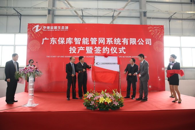 經(jīng)過(guò)連續(xù)8個(gè)月的緊張籌建,廣東保庫(kù)智能管網(wǎng)系統(tǒng)有限公司首條生產(chǎn)線于21日成功投產(chǎn),成為中德金屬生態(tài)城首家投產(chǎn)企業(yè)。揭陽(yáng)對(duì)德合作“百人團(tuán)”首獲碩果,標(biāo)志著中德金屬生態(tài)城對(duì)德(歐)合作邁出了具有實(shí)質(zhì)性意義的重要一步。副市長(zhǎng)張時(shí)義等市領(lǐng)導(dǎo)及中德金屬集團(tuán)相關(guān)領(lǐng)導(dǎo)參加活動(dòng)。
