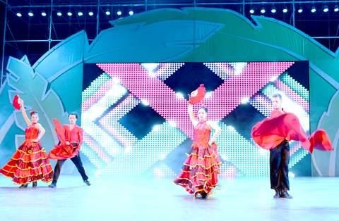銀星廣場(chǎng)上,燈光閃爍,舞臺(tái)上,來自歐洲的歌舞團(tuán)用精彩的舞蹈表演吸引了大批觀眾觀看,歌舞團(tuán)以一曲形式開放自由的踢踏舞開啟表演,舞者跟隨舞曲的節(jié)奏,通過趾尖與腳跟的相互配合,發(fā)出響亮的“踢踢踏踏”聲音,活潑歡快的表演獲得臺(tái)下觀眾的陣陣掌聲。隨后,光影陸離的光影舞、富有異域風(fēng)情的肚皮舞等精妙的節(jié)目更是讓大家贊嘆不已,現(xiàn)場(chǎng)觀眾紛紛拿出手機(jī)記錄一個(gè)個(gè)精彩的瞬間,整個(gè)廣場(chǎng)成為一片歡樂的海洋。