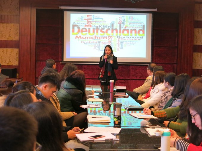 為打造德語學(xué)習(xí)交流平臺(tái),提升集團(tuán)員工的國際商務(wù)辦公技能,1月27日中午,第一期德語沙龍培訓(xùn)班在宏和大廈5樓正式開班;顒(dòng)由中德金屬集團(tuán)及集團(tuán)工會(huì)聯(lián)合舉辦,來自集團(tuán)招商部及后勤部的30多名員工踴躍參加。集團(tuán)副總裁楊志新、晉衛(wèi)東及工會(huì)委員會(huì)成員張少榮應(yīng)邀參加。